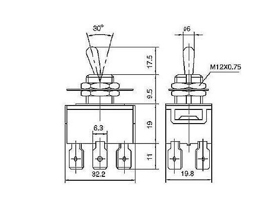 Přepínač páčkový 250V/10A I - I