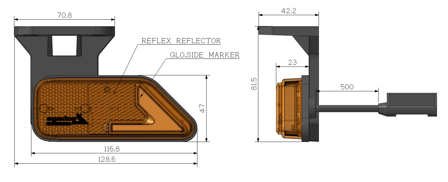 Svítilna poziční LED 12V AGADOS oranžová pravá