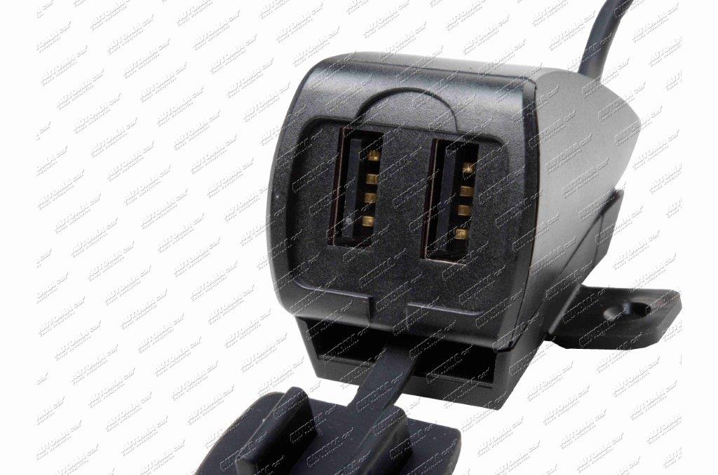 Zásuvka 2xUSB 12/24V - 5V 5,4A voděodolná IP66 na řídítka s kabelem 150cm