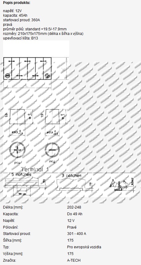 Baterie 45Ah BAUER Calcium 370A 210x175x175