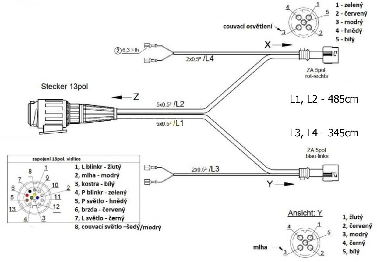 Kabeláž přívěsného vozíku 13.pól. 4,85m + 2x kabel 3,45m 2x0,5mm²