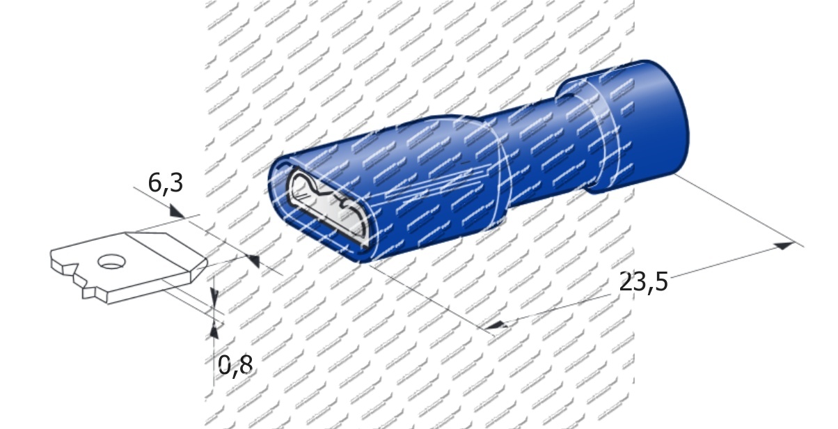Konektor dutinka 6,3mm modrá izolovaná /1,0-2,5mm²/