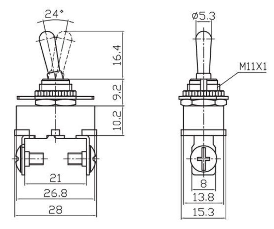 Spínač páčkový 12V/20A 24V/10A 0 - I