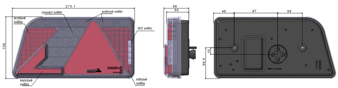Svítilna koncová LED 12V AGADOS Canbus levá s SPZ s 6. pólovým konektorem